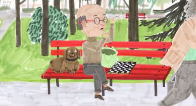 In the park Anton is looking for someone to play chess with. For someone who plays a better game than his dachshund. The gardner is looking for a mysterious vandal who has lost a yellow boot. But perhaps they are both looking for the same?